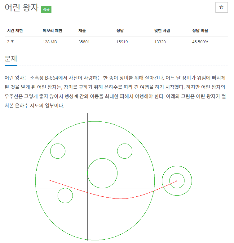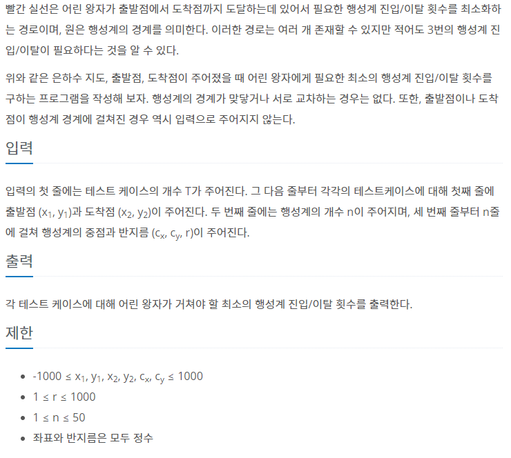 여기서 생각해야할 가장 중요한 것은 시작점 도착점 두개 모두 같은 원 안에 들어있을때다!!!!!