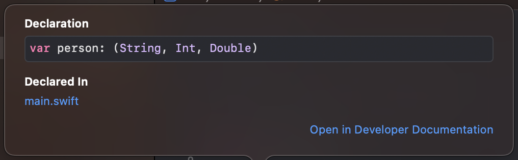 var person : (name : String, age : Int, heigth : Double) = ("Suzzang", 26, 164.9)